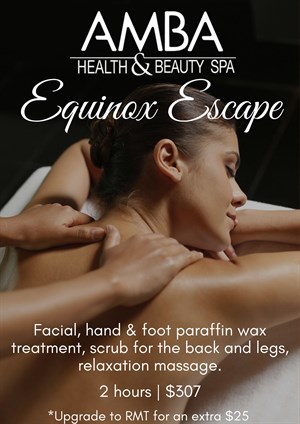 Treat yourself to a Facial, hand & foot paraffin wax treatment, scrub for the back and legs, relaxation massage.
